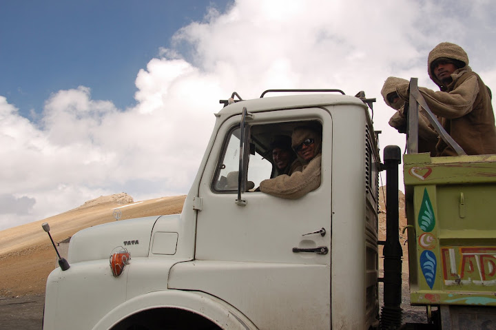Дорога опять испортилась, но это нам только на руку. На встречу едут военные грузовики. Их в этом районе Гималаев очень много, так как рядом границы и не самые спокойные. Военные машины всегда пропускают, сколько бы их не было. И обычно их очень много не меньше 15-20 в караване. Они проезжают мимо, обдавая пропускающие машины грязью и пылью. Так что в Ле мы приехали как 2 замарашки, покрытые гарью и пылью.